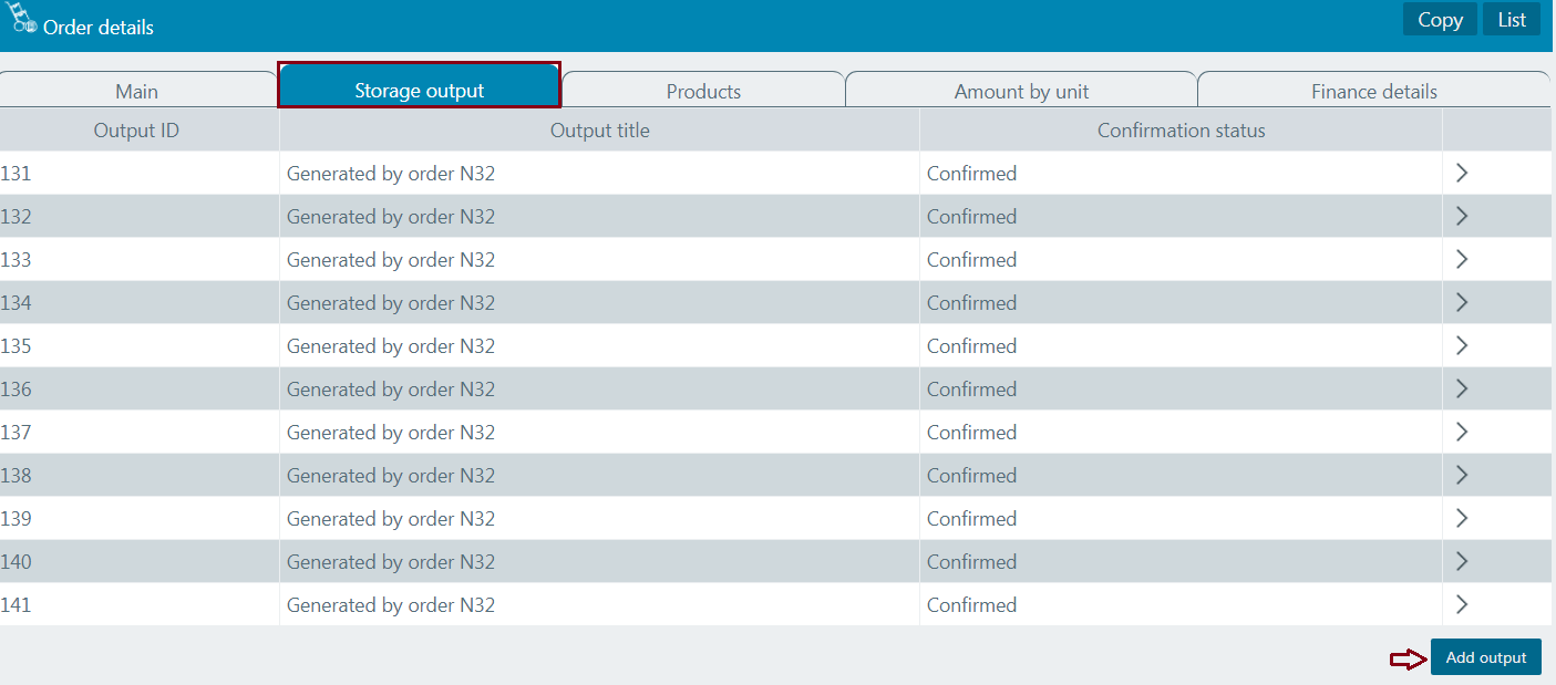 To add an output from the order page you need to enter the Storage output tab.