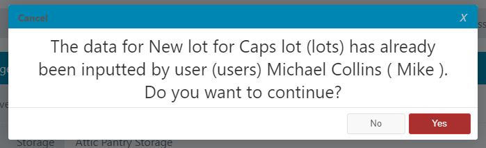 Remember: When more than one inventor users are doing inventorisation of products in the same lot and one of them trying to edit a count the system will ask:
