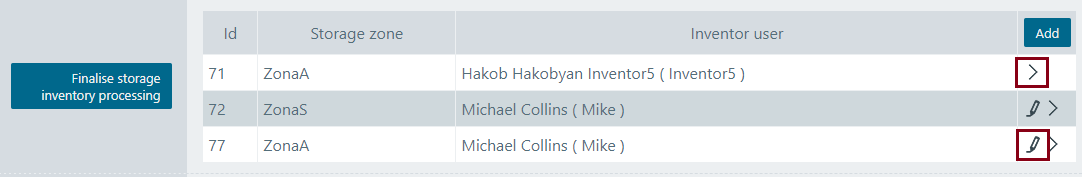 As long as the inventory time does not begin the user who is going to inventor storages can do changes. Otherwise, the edit button will disappear and you will see only the details button. See the differences in the picture.