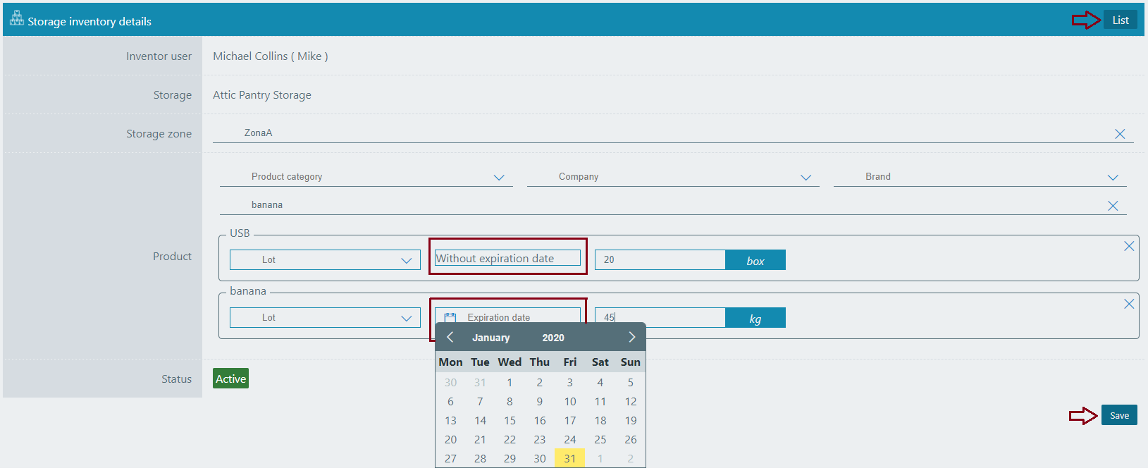 Let's choose the products and see the next steps of inventorying. Keep attention to the expiration date. When we were inputted products before, there was a row "Without expiration date" and two buttons with "Yes" and "No".